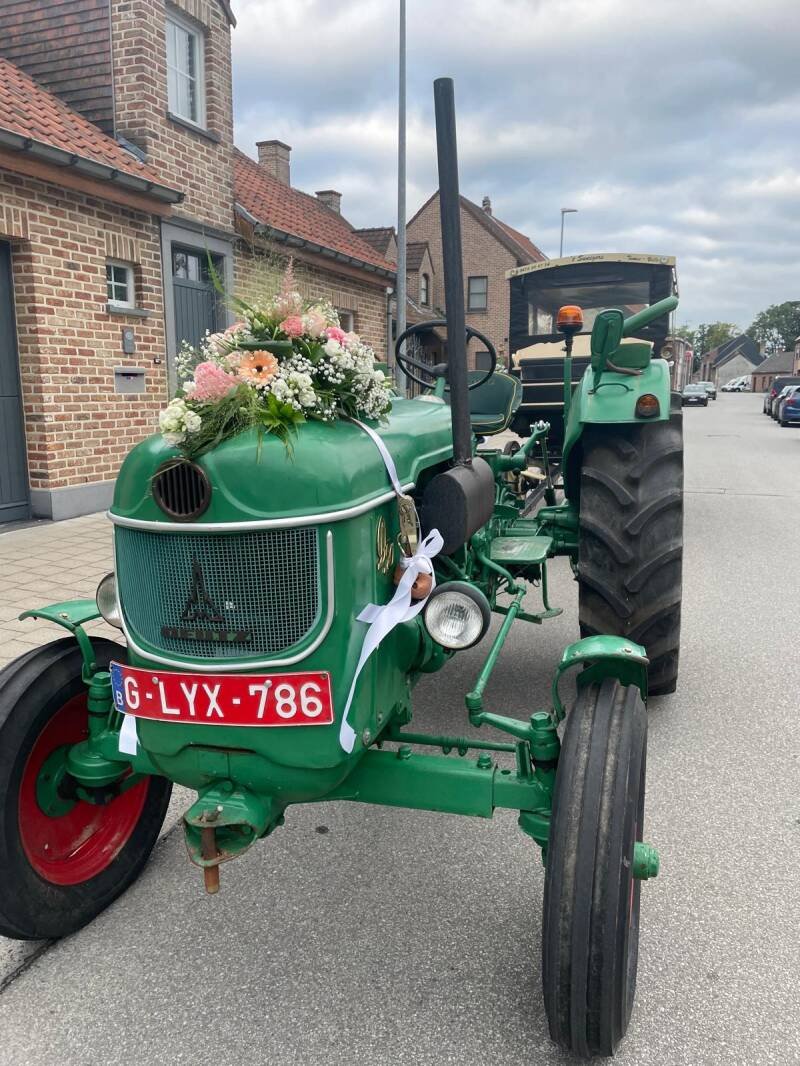 Deze wordt telkens verhuurd met een toffe Deutz Oldtimer (met chauffeur)